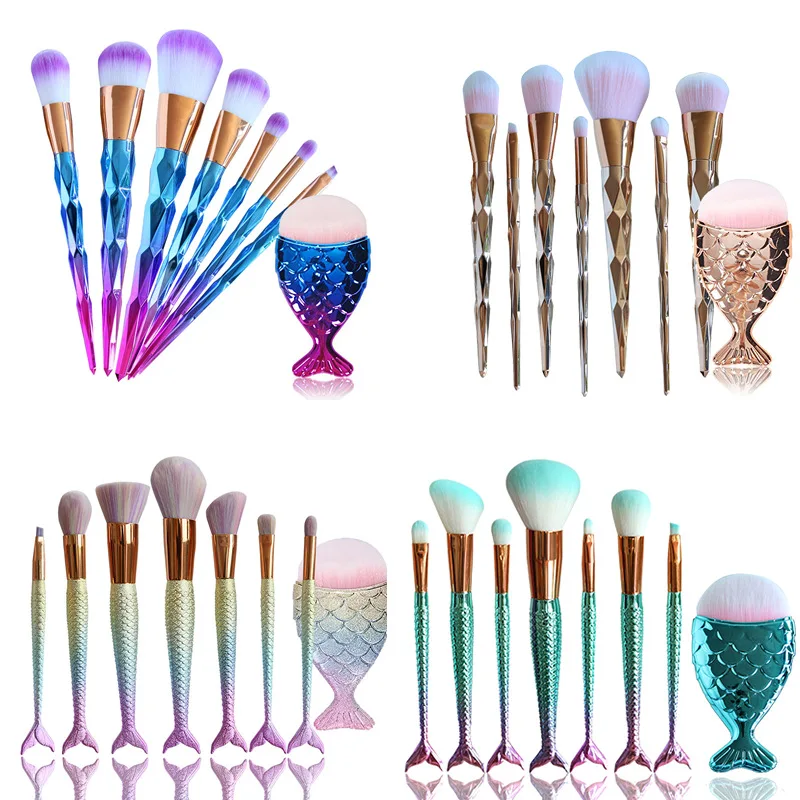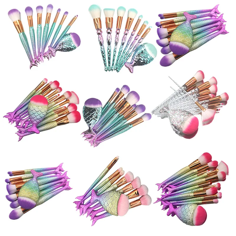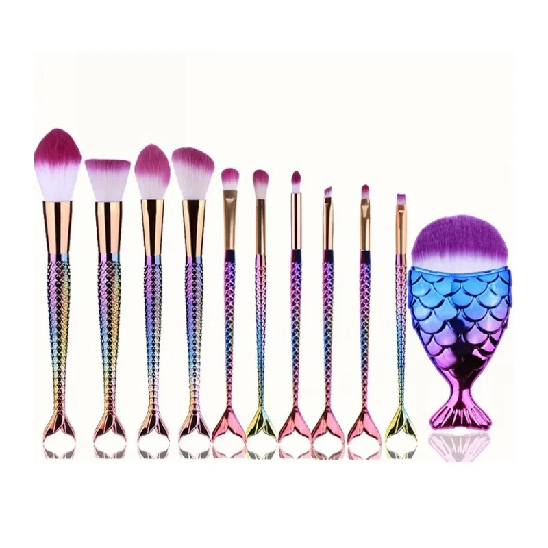 Expensive 11PCS Rose Gold Makeup Brushes Set Mermaid Fishtail Shaped Foundation Powder Cosmetic Rainbow Eyesh