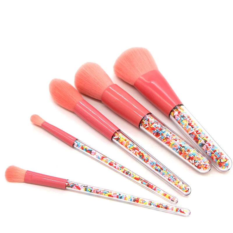 Coupon New Style 5-Leg Candy Makeup Brush Rainbow Plastic Particles Transparent Rod Makeup Brush Set Eye S
